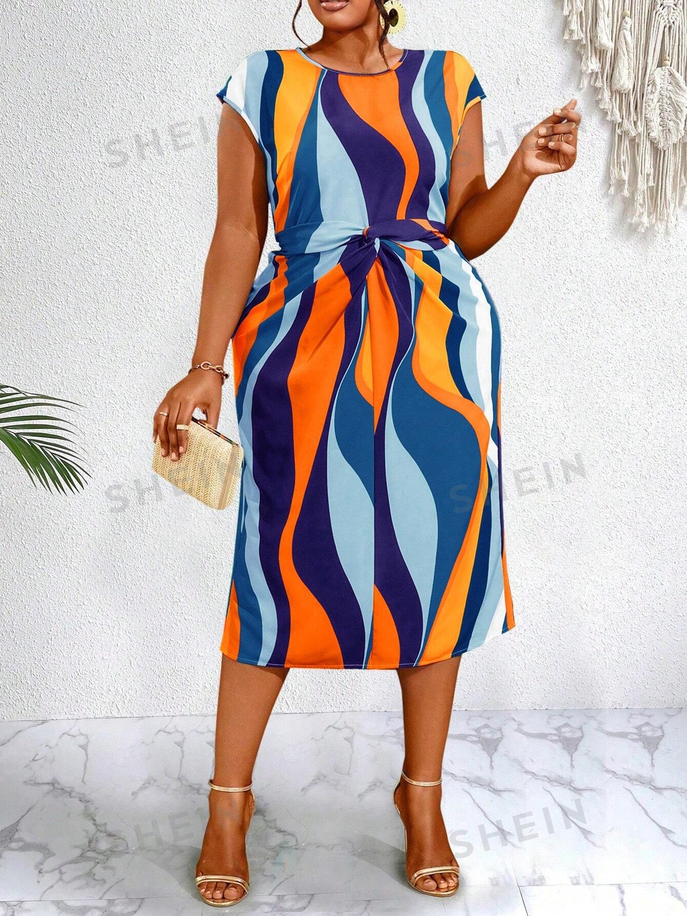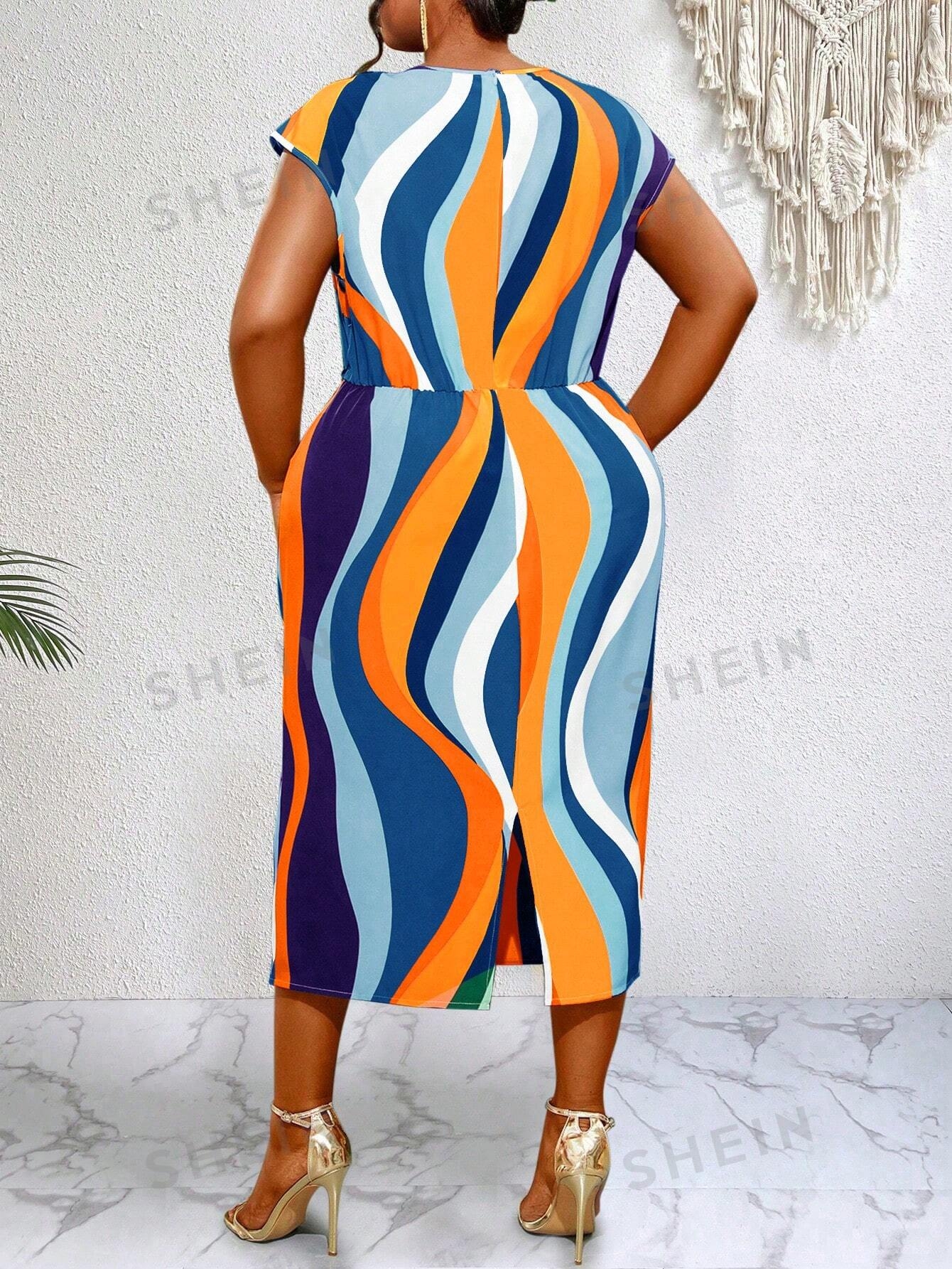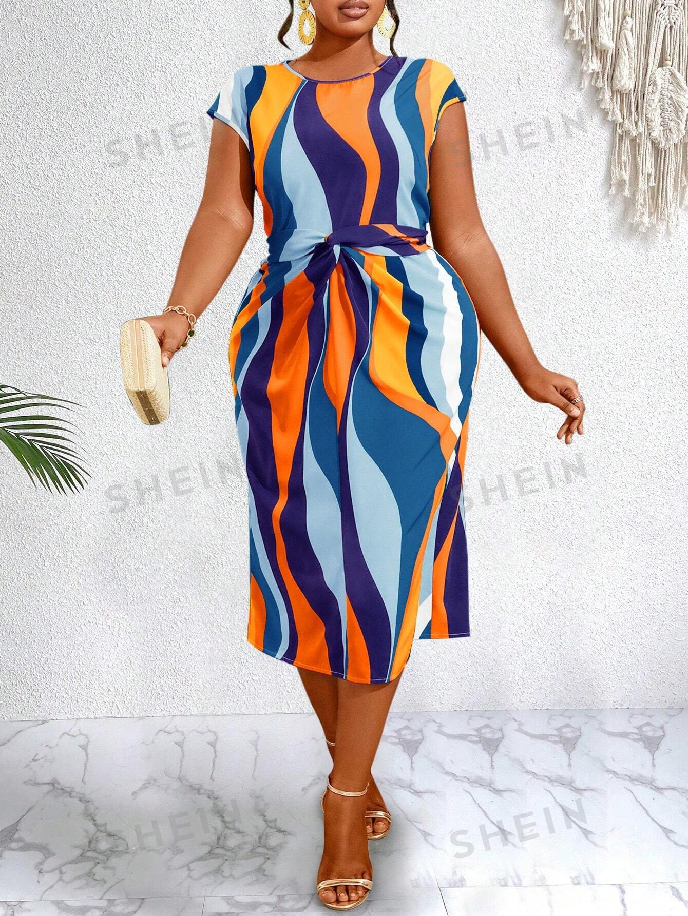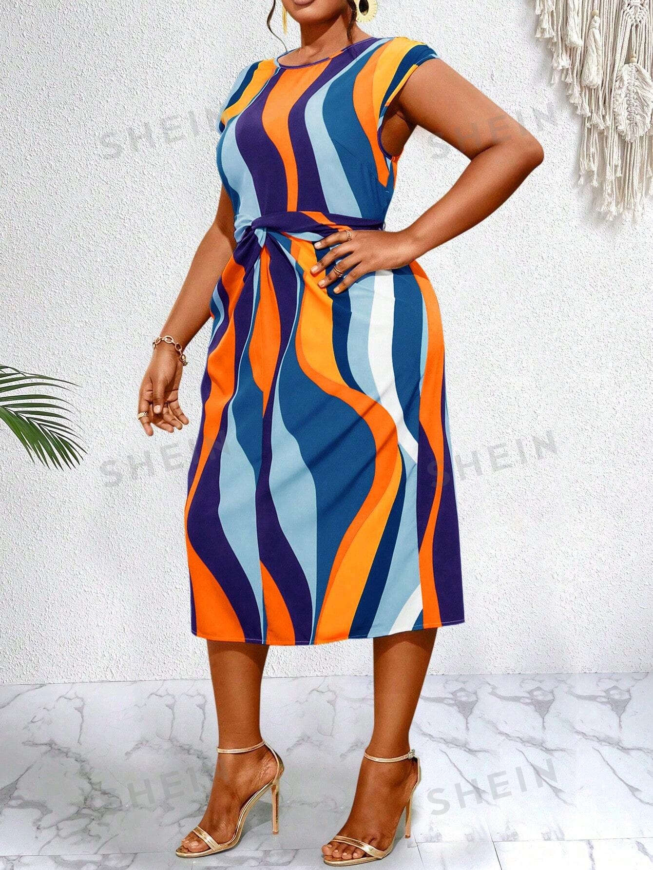 2 reviews for SHEIN Slayr Plus Colorblock Batwing Sleeve Belted Dress