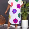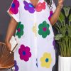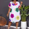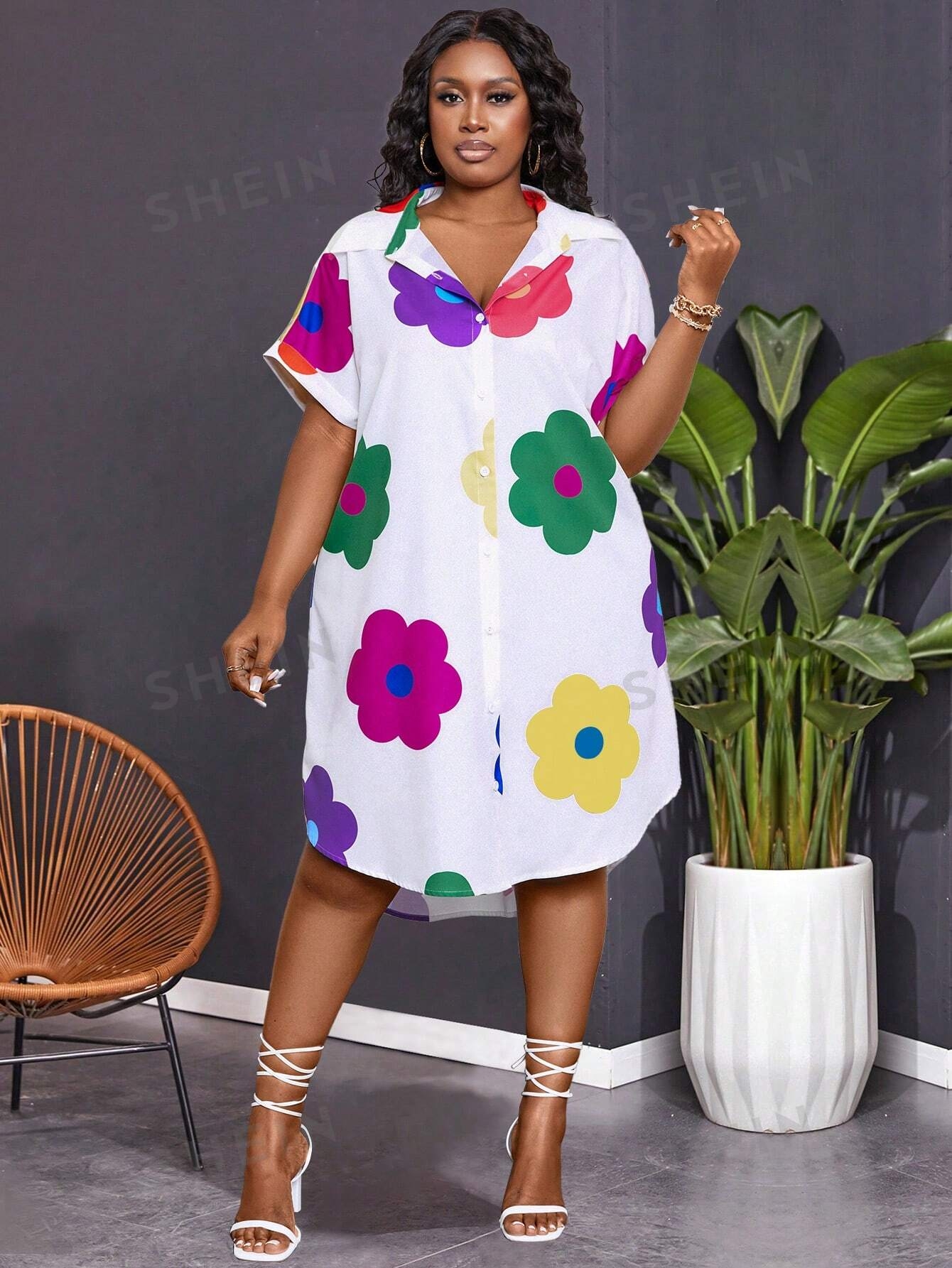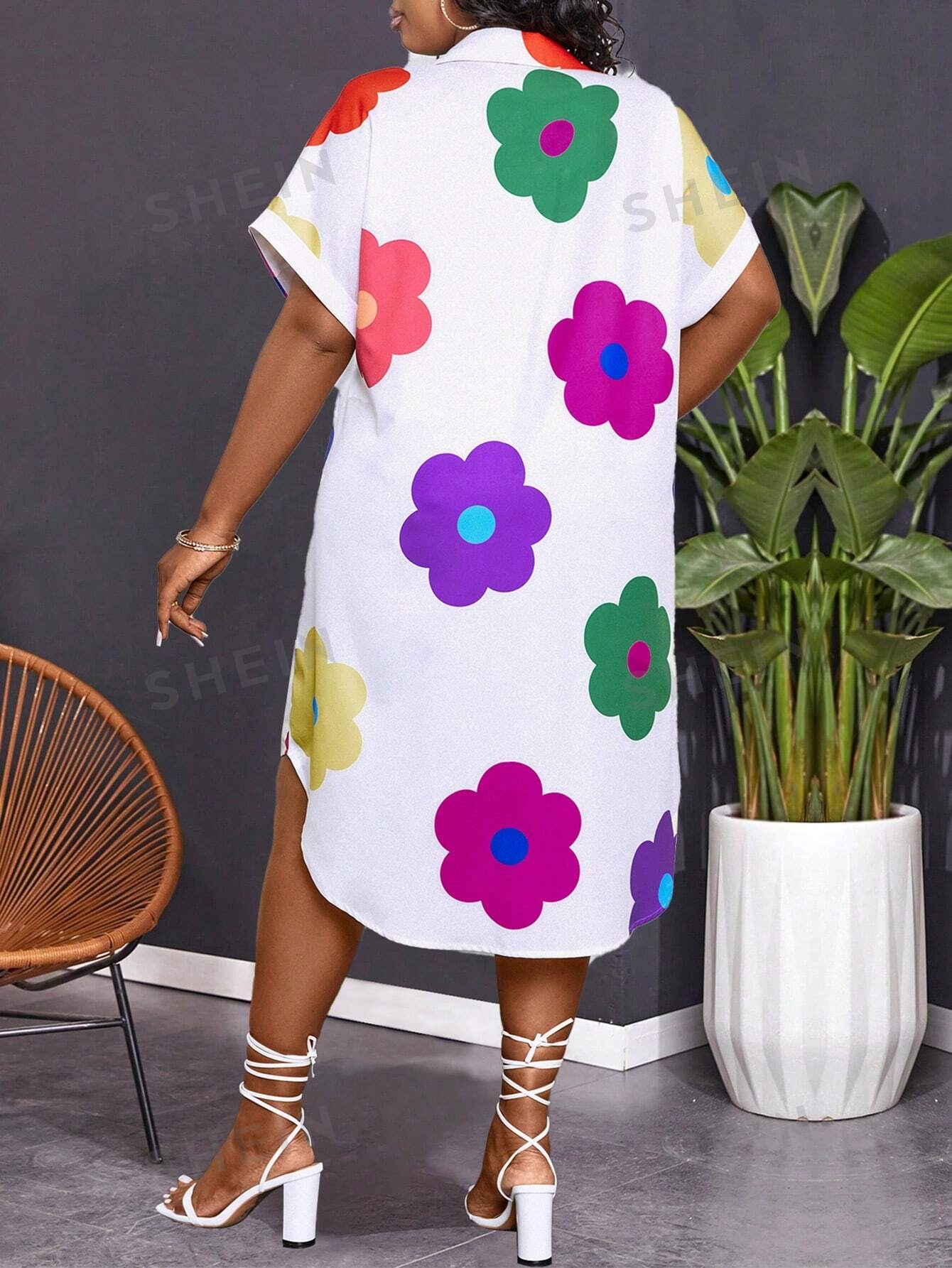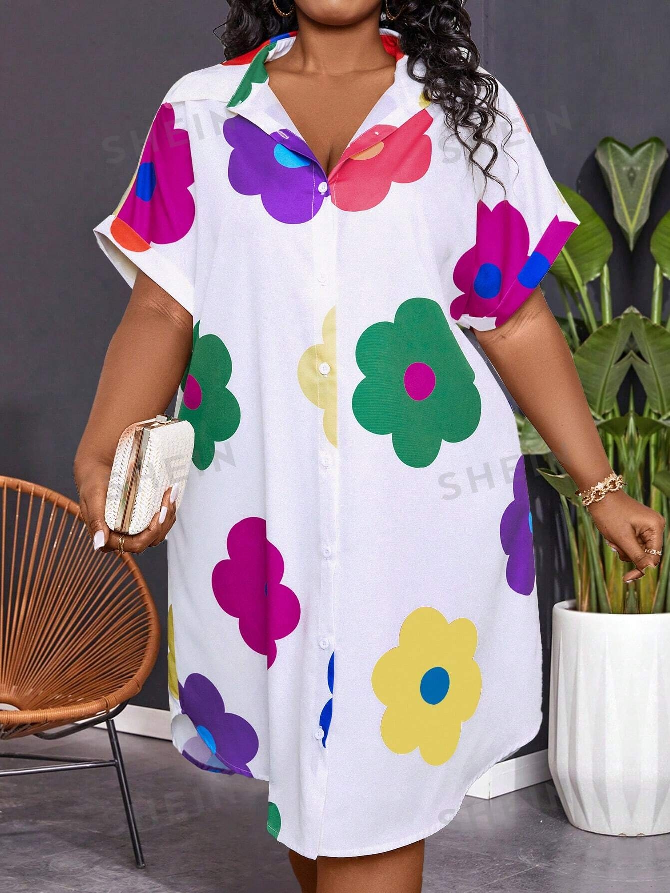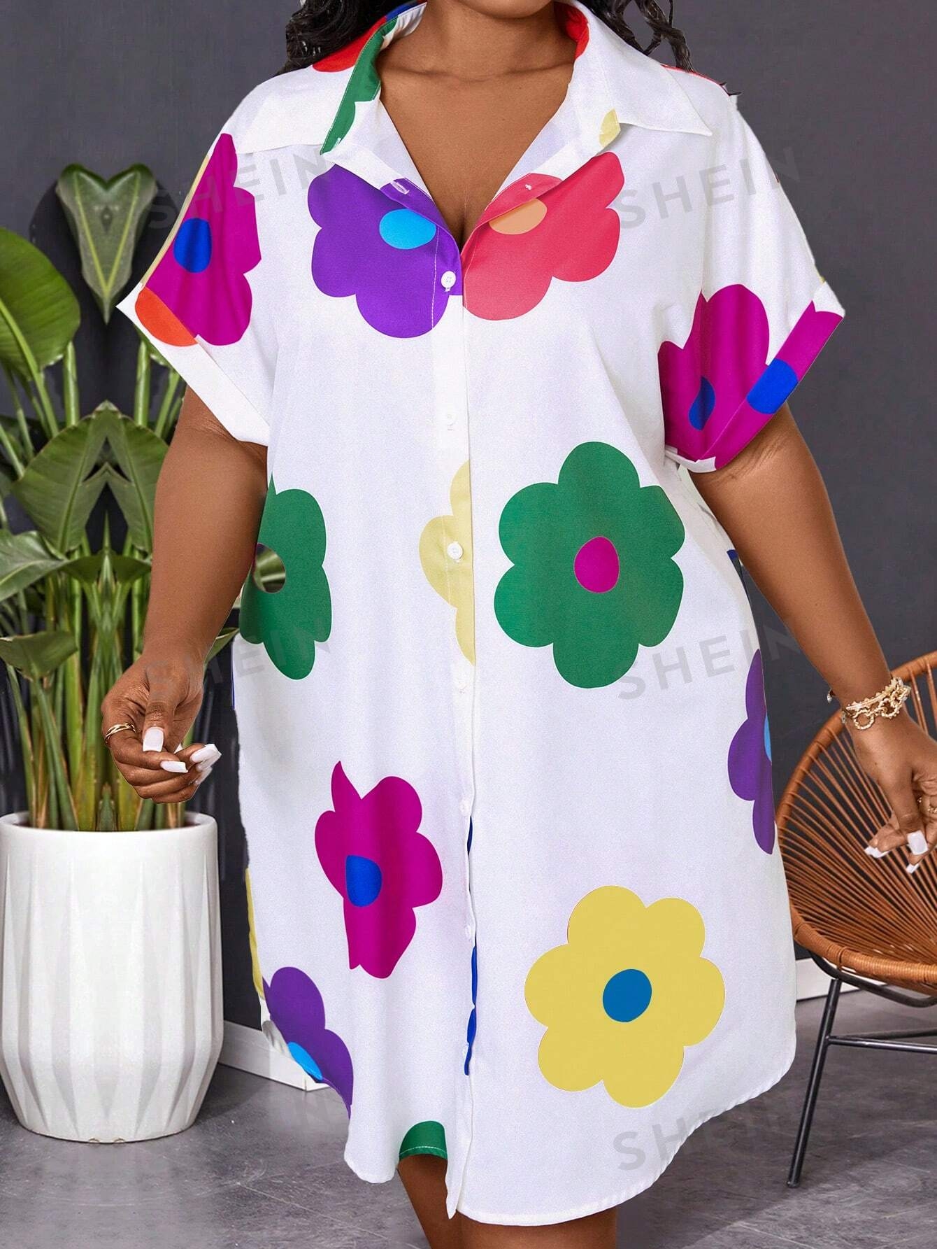 1 review for SHEIN Slayr Plus Size Summer Casual Color Block Floral Printed Batwing Sleeve Front Button Shirt Dress