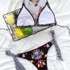 3 reviews for SHEIN Swim Summer Beach Plant Print Bikini Set Halter Triangle Bra & Tie Side 2 Pieces Bikini