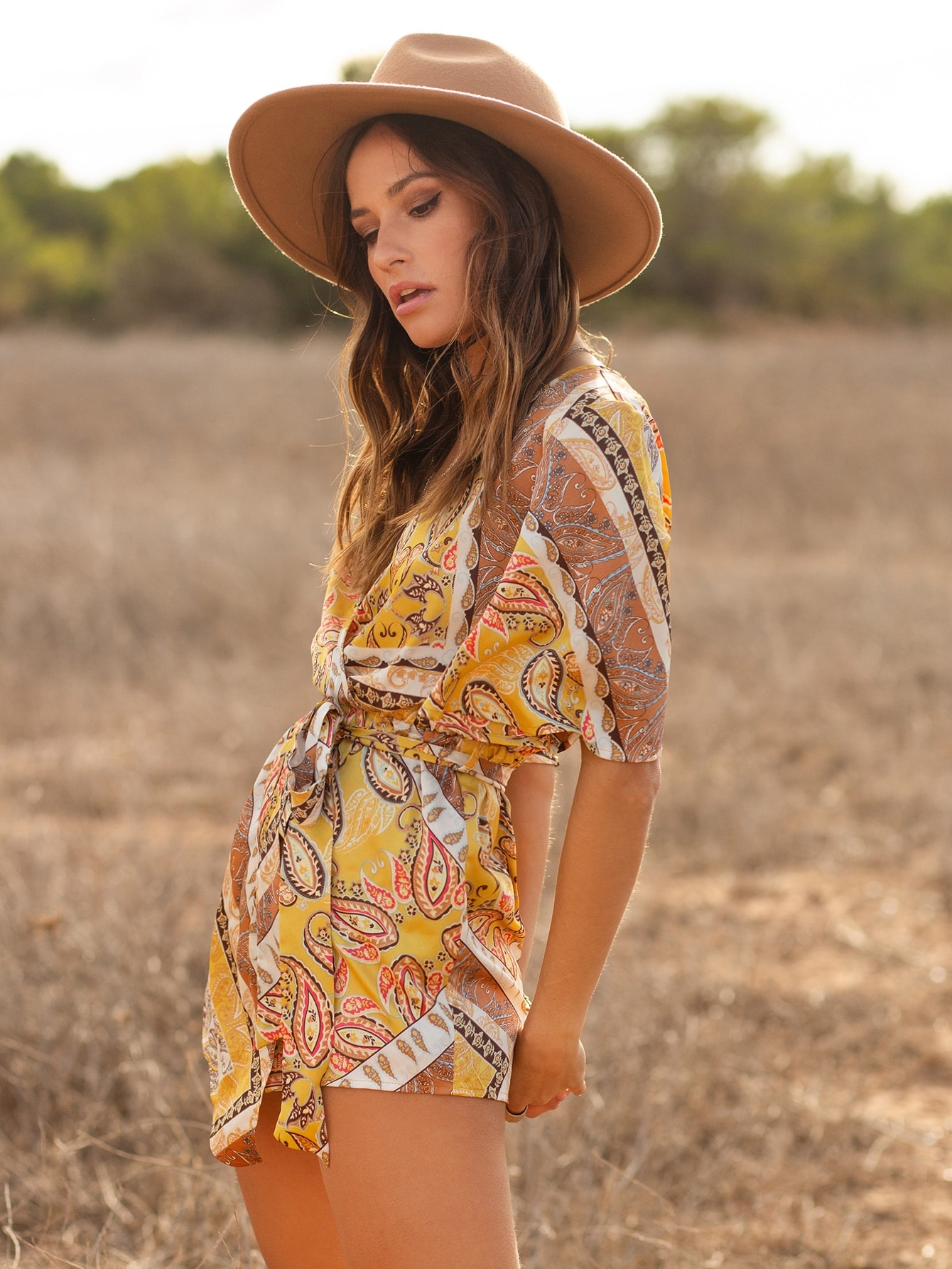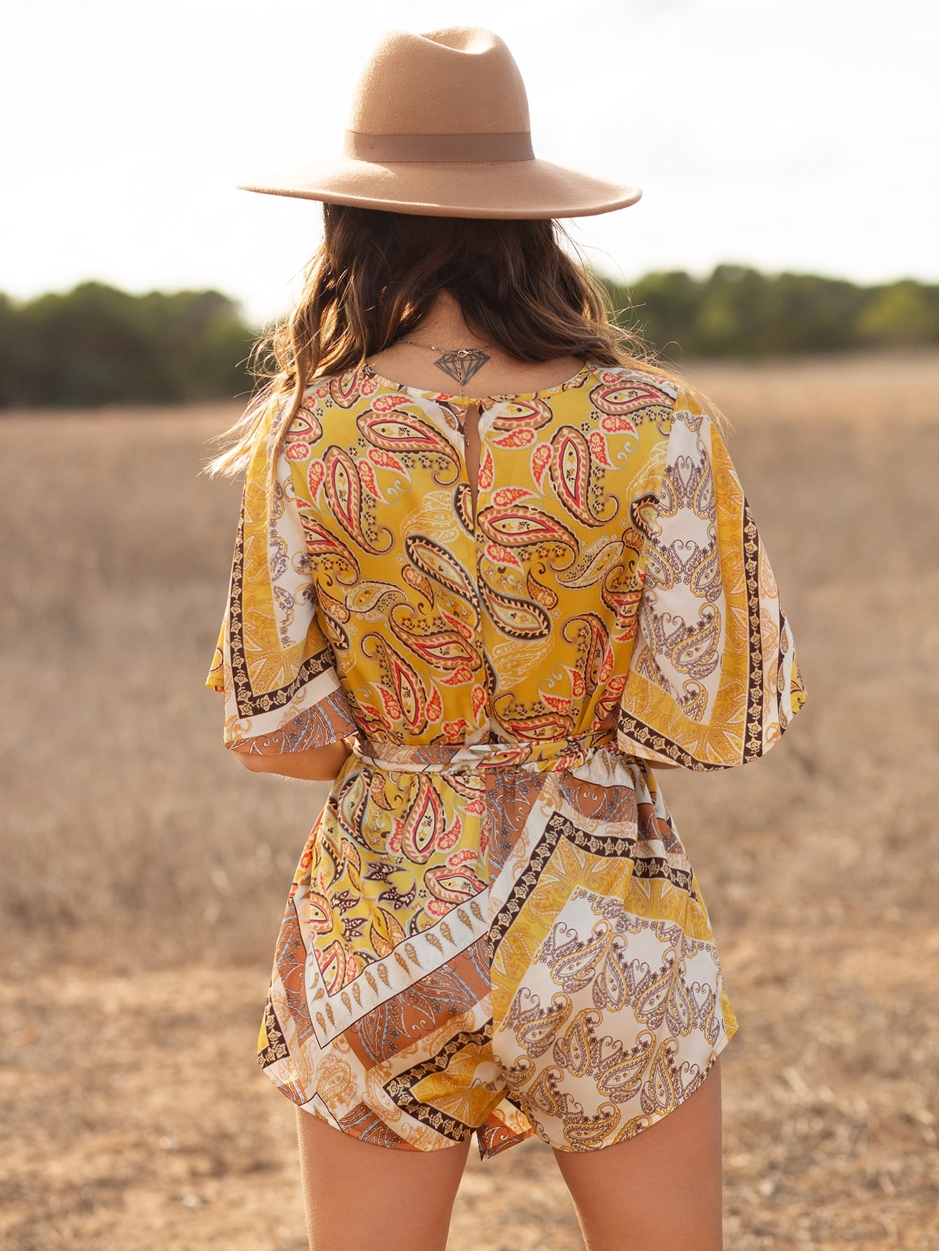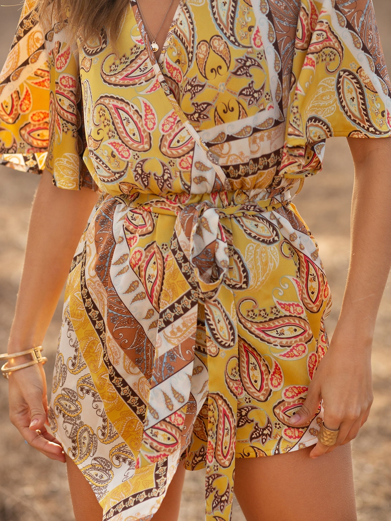 3 reviews for SHEIN VCAY Paisley Print Wrap Belted Romper