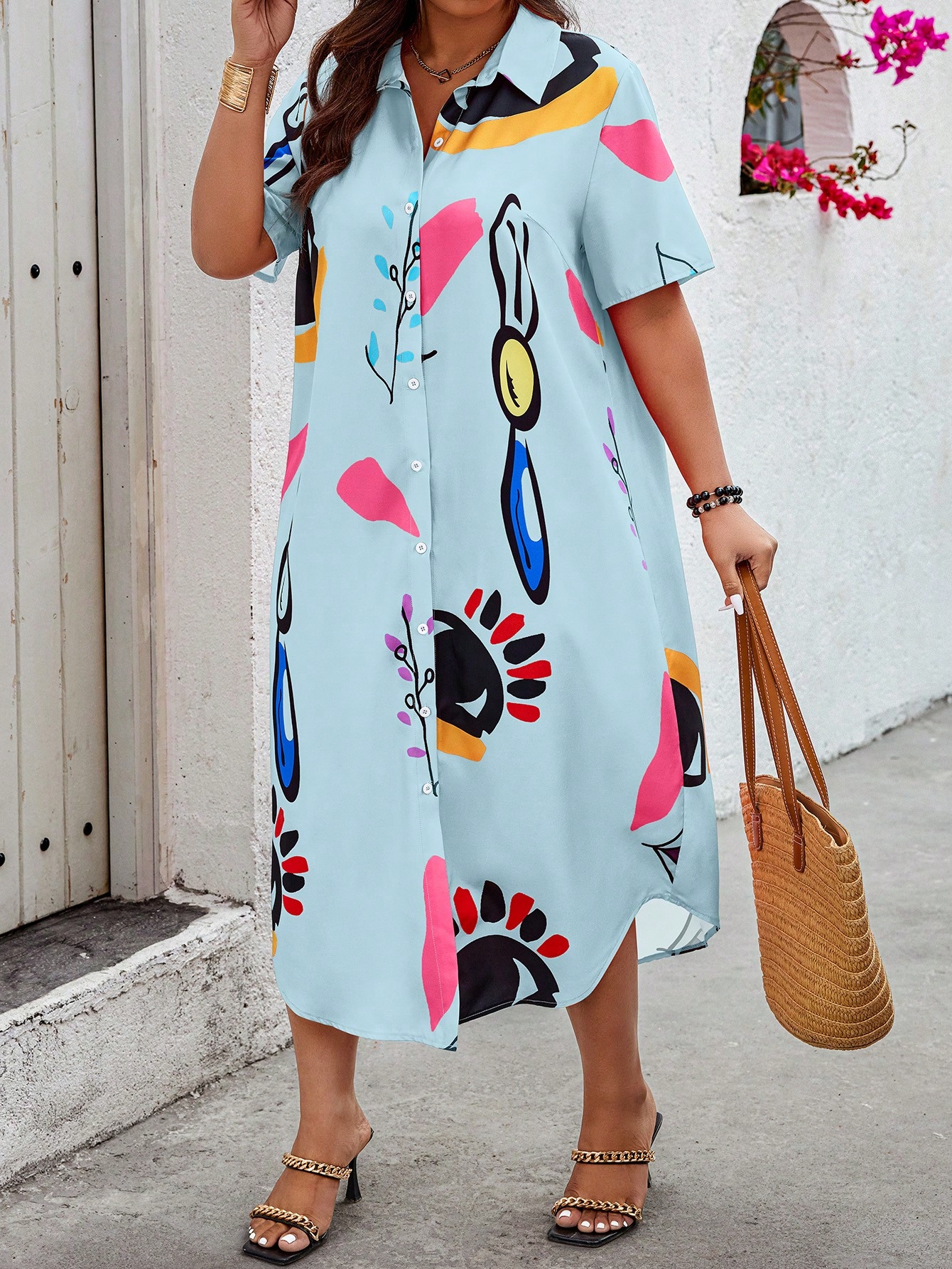 2 reviews for SHEIN VCAY Plus Size Shirt Collar Printing Loose Fit Casual Vacation Matching Dress
