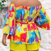 2 reviews for SHEIN VCAY Plus Size Women’s Floral Print Off Shoulder Top And Shorts Set